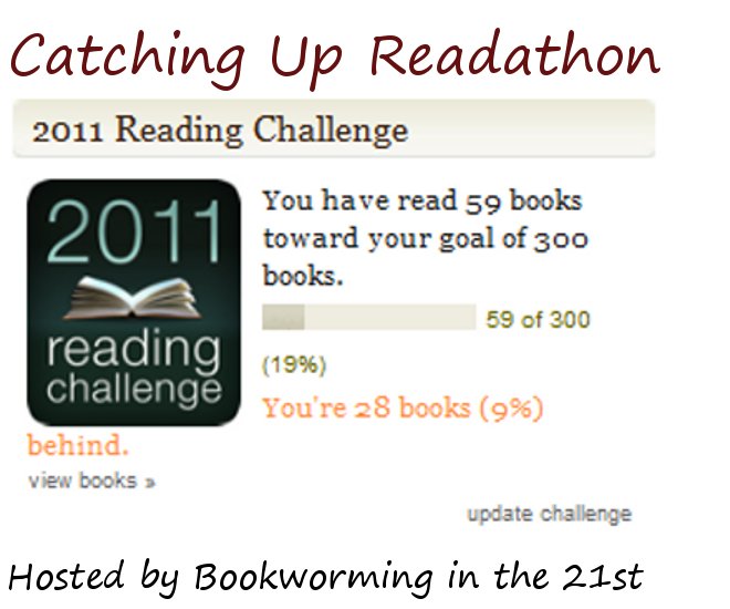 Do you go on Goodreads? Are you doing the Reading Challenge? Does it say you're behind? Astronomically behind? Well, it does for me. 28 books behind! I need a kick in the butt. With the long weekend coming up (thanks to a certain Christian holiday), I figured now is as good as any to try and get caught up.